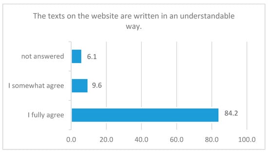Response rate to the statement “The texts on the website are written in an understandable way”, in percent, N = 114.