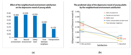 4.3. Relationship between Satisfaction with Neighborhood Environment and Young Adults’ Depressive Moods