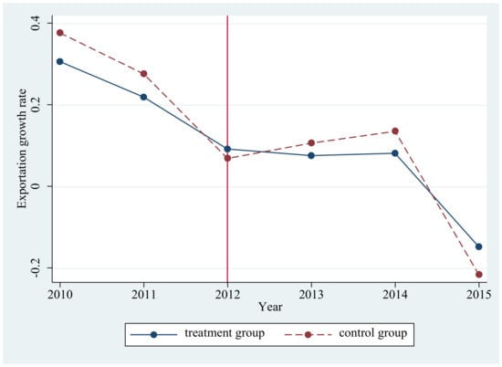 Moreover, to validate the assumption of parallel path, we compare KCZ cities (the treatment group) and other cities (the control group) in terms of the mean of exportation growth rate in Figure 2. Clearly the treatment group and the control group are comparable before the implementation of the APCKZ policy, while they diverge in the post-APCKZ policy period.