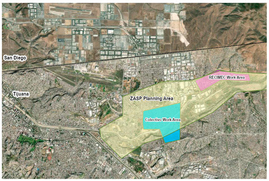 The environmental justice and health risks in Tijuana urban communities are addressed by two organizations, the Colectivo Salud y Justicia Ambiental (formerly the Colectivo Chilpancingo) and RECIMEC (Red de Ciudadanos por el Mejoramiento de Las Comunidades), who used the tool of community mapping to address some of these issues. In 2015, the Colectivo’s campaign director learned that Tijuana’s urban planning agency (IMPLAN) was going to update the Zona Alamar Specific Plan (ZASP). This community-specific urban plan was to delineate the land use priorities and projects for the next ten years. The Colectivo decided to create a community mapping project in 2015 to add their priorities to the ZASP. A community mapping approach was chosen because the community-specific urban plan draft indicated to the Colectivo the importance of geo-referenced data for aligning appropriate land use zoning. This draft also illuminated the errors present in IMPLAN’s original data on environmental issues and land use. In 2017, RECIMEC joined the community mapping project in order to engage a larger set of communities within the ZASP planning area. The ZASP Planning area and the two organization’s work area are represented in the ZASP map in