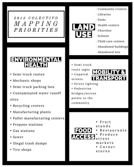 The environmental health priorities identified by the community mapping project are important for expanding the understanding of localized border environmental justice experiences [
