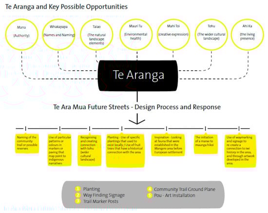 - Hoskins, R. Te Aranga Māori Design Principles—Experiences in Tāmaki. In Te Mauri o te Whenua Conference, 19 Poututerangi 2015; New Zealand Institute of Landscape Architects: Rotorua, New Zealand, 2015. [Google Scholar]