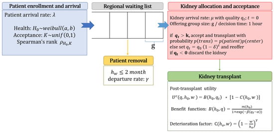 The simulation model for the kidney allocation and acceptance process.