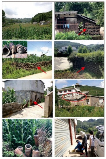 The IZS involved a lot of villagers from 1980s to 2000s since it was a high-income business at that time and the smelting sites were often close to or inside the villages (Figure 1 and Figure 2), where the smelting furnaces were set up, where coal and zinc concentrate from the same county was transported to, and where zinc ingots were produced and the smelting slags were produced and thereby discarded (Figure 1). After the complete banning of IZS in 2006, the vast majority of smelting slag piles had not been treated for the first several years until 2010s when they were disposed of or landfilled by the local authorities to isolate these hazardous materials from the surface ecosystem (Figure 1). However, the smelting tool for holding the zinc concentrate (mortars) during smelting was still widely distributed in the village in the following years, being used for fences, walls, or as a weight (Figure 3).
