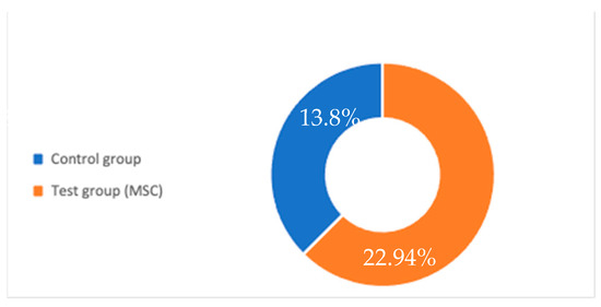 Comparative graphic between the control group and test group regarding new bone formation. MSC: Mesenchymal stem cell.
