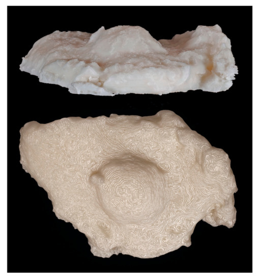 Lateral and superior views of physical 3D model of Case 1 printed via material extrusion.
