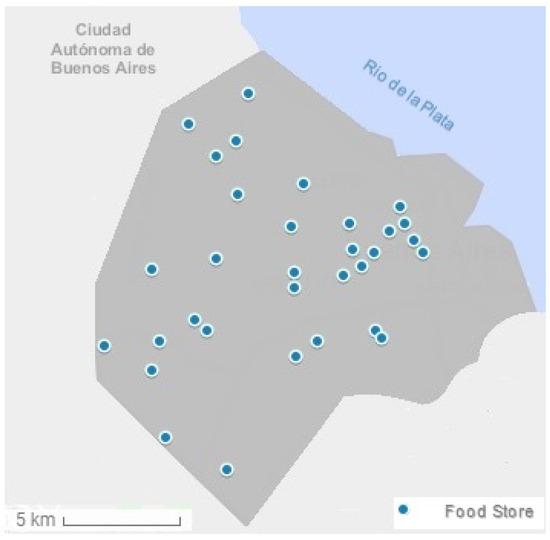 In Argentina, supermarkets are an important part of the community nutrition environment, including both non-discount and discount stores, which are a particular type of supermarket that typically offer products that are priced lower than in other supermarkets [15,16,17,18]. In addition to large supermarket chains, there are independent (non-chain) supermarkets, about 80% of which are owned by Chinese independent grocers and are called “Chinese Supermarkets” [19,20]. The community nutrition environment in the City of Buenos Aires also includes other retailers such as specialized small grocery stores (e.g., ‘green-grocers’), itinerant food fairs, kiosks and restaurants [19,21]. It has been estimated that supermarket chains with the greatest number of stores and the largest sales space sell 58% of the total food and beverages in Argentina [16]. Moreover, during the last decade, these large chains have opened smaller branches [19]. As a result, between 2011 and 2017, the number of supermarkets in the city doubled [22].