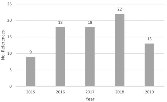 Number of references per year from 2015 to 2019.