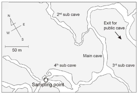 Location of the sampling point in Gyokusendo cave (map from, Shiroma et al. 2016 []).