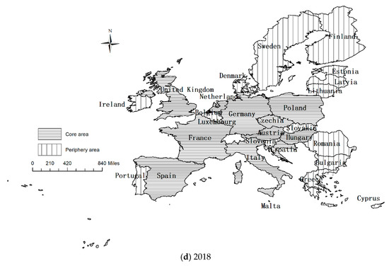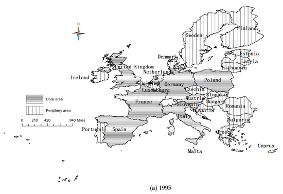 Core-periphery structure of the tourism economic network in the EU from 1995 to 2018.