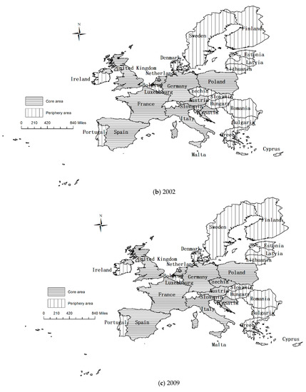 From 1995 to 2018, the core area of the EU tourism economic connection network expanded. In 1995, the core area included eight countries: Austria, France, Germany, Italy, the Netherlands, Poland, Spain and the United Kingdom. In 2002, Croatia joined the core area, the Czech Republic joined in 2009, and Hungary in 2018. At that time, the number of core area countries had increased to 11, while the number of peripheral countries had decreased from 20 to 17. The 17 peripheral area countries were Belgium, Bulgaria, Cyprus, Denmark, Estonia, Finland, Greece, Ireland, Latvia, Lithuania, Luxemburg, Malta, Portugal, Romania, Slovakia, Slovenia and Sweden. In terms of space, the core areas were mainly concentrated in Western Europe, Southern Europe, the Mediterranean land area and Central Europe. Traditional world tourism destination countries are the absolute core areas of the EU tourism economy, while marginal areas were mainly concentrated in Eastern Europe and Northern Europe, as well as in Mediterranean island countries.
