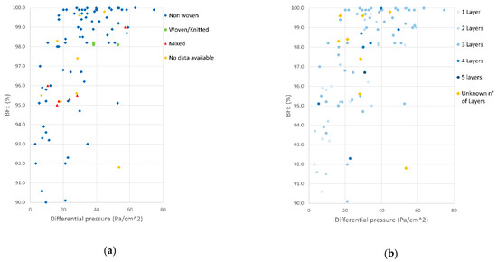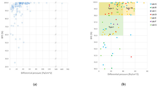 | Mask Type | Bacterial Filtration Efficiency (BFE) % | Differential Pressure (DP) Pa/cm2 |