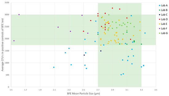- the average number of CFUs in the two positive controls (tests without mask) should be between 1700 and 3000.