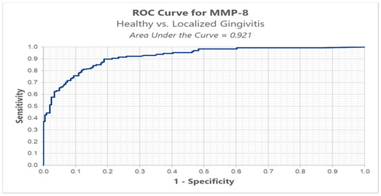 ROC analysis of MMP-8 in healthy versus localized gingivitis.