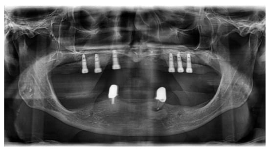 - Hasegawa, T.; Kawabata, S.; Takeda, D.; Iwata, E.; Saito, I.; Arimoto, S.; Kimoto, A.; Akashi, M.; Suzuki, H.; Komori, T. Survival of Brånemark System Mk III implants and analysis of risk factors associated with implant failure. Int. J. Oral Maxillofac. Surg. 2017, 46, 267–273. [Google Scholar] [CrossRef] [PubMed]
