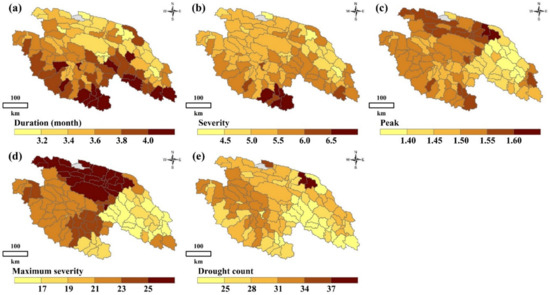 Drought is one of the widespread climatic extreme events that is characterized by prolonged water deficit. Both social economic systems and ecological environment systems are vulnerable to drought [1,2,3]. According to statistics, about 8% of global vegetated land area has been affected by extreme drought, causing GPP (Gross Primary Productivity) reduction of 1.5 PgC (petagrams of carbon) during 2001–2011 [4]. It has been estimated that the cereal losses due to droughts reached up to 1820 million Mg in worldwide in the past four decades [5]. Globally, more than 11 million deaths have been caused by drought disasters and more than 2 billion people have been affected since the 1990s [6]. Furthermore, the drought frequency and intensity in the mid to late 21st century were projected to increase in the context of climate change [6,7], which would lead to more drought problems in the future. Thus, it is important to assess drought characteristics in the planning and management of water resources. In recent research, a plenty of drought indices have been developed to identify different types of droughts, such as meteorological drought, hydrologic drought, agricultural drought, and socioeconomic drought [8,9]. The most widely used drought indices include standardized precipitation index (SPI) [10,11], Standardized Precipitation-Evapotranspiration Index (SPEI) [12], Palmer drought severity index (PDSI) [13], soil moisture drought index [14], and so on. In addition, a run theory for identifying drought parameters concerning drought duration, magnitude, and intensity was proposed by Yevjevich [15]. This approach has been applied in several drought models and analyses [16,17,18,19,20,21].