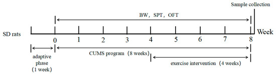 The validity of the modeling was evaluated by the body weight (BW), sucrose preference test (SPT), and open field test (OFT) to assess depression-like behavior at the end of each week.