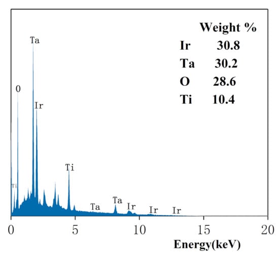 X-ray energy-dispersive spectroscopy (EDS) of the Ti/IrO2-Ta2O5 electrode.