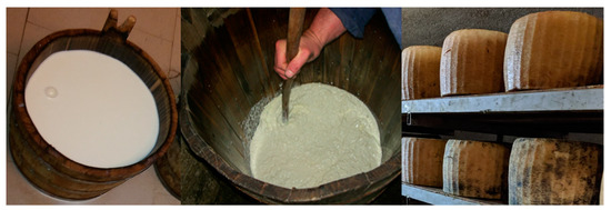 Traditional Sicilian cheeses are in contact with wood during the entire production process, from milking until ripening. Figure 2 reports the main steps of production of PDO Pecorino Siciliano cheese, highlighting the constant contact with wooden equipment.