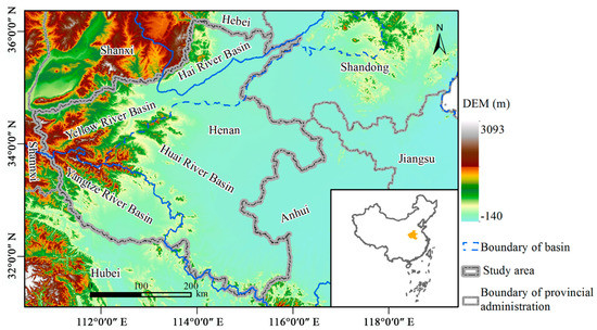 (3) The administrative boundaries and river basin boundaries were obtained from the Resource and Environment Science and Data Center of the Chinese Academy of Sciences (http://www.resdc.cn/, accessed on 21 June 2020).