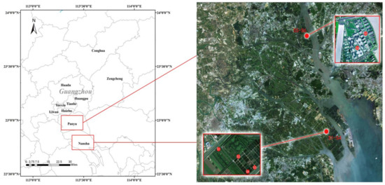 Nansha is located at the geographical geometric center of the Pearl River estuary (located in the south-central part of Guangdong Province, China, formed by the outflow of the Pearl River to the South China Sea) and the Guangdong–Hong Kong–Macao Greater Bay Area, where the Xijiang River, Beijiang River and Dongjiang River meet. Its fishery resources are abundant, the existing contiguous aquaculture area exceeds 18 million m2, and the standardized aquaculture area is over 70%, making it one of the largest contiguous aquaculture bases in the province. Since the late 1970s, the Pearl River Delta region has become the most populous and economically active region in China [32]. Some studies have shown that the main stream of the Pearl River has a high abundance of MPs [33], so the culture pond near the Pearl River Estuary may be seriously polluted by MPs.