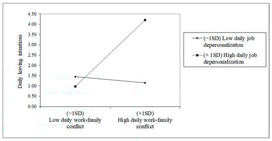 Interaction effects of Daily work-family conflict and Daily job depersonalization in explaining Daily leaving intentions.