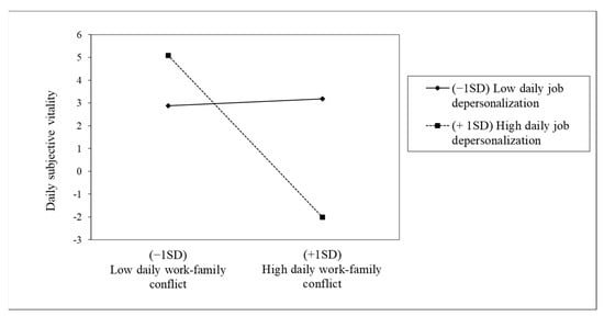 Interaction effects of Daily work-family conflict and Daily job depersonalization in explaining Daily subjective vitality.