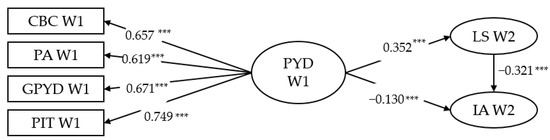 With reference to the previous studies [75,76], we proposed that PYD attributes would be positively associated with life satisfaction concurrently (Hypothesis 2a) and longitudinally (Hypothesis 2b).