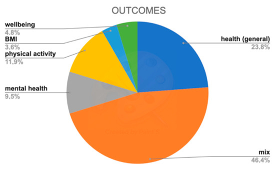 Despite the already mentioned heterogeneity, some considerations are worth noting. Firstly, our analysis showed that reducing the BMI, increasing physical activity, and fruit and vegetables intake are the dimensions more often observed in studies achieving their outcomes when compared to the other groups. On the one hand, these observations might be not surprising, as those indicators might be more easily quantifiable when compared to other social or emotional dimensions. On the other hand, these findings might pave the way for future research providing the basis and rationale for future reproducible and scalable approaches.