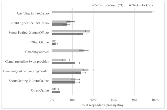 - Håkansson, A. Changes in Gambling Behavior during the COVID-19 Pandemic—A Web Survey Study in Sweden. Int. J. Environ. Res. Public. Health 2020, 17, 4013. [Google Scholar] [CrossRef] [PubMed]
