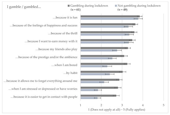 | Games Types | All Respondents (n = 110) | Respondents Gambling during the Lockdown (n = 61) | ||||