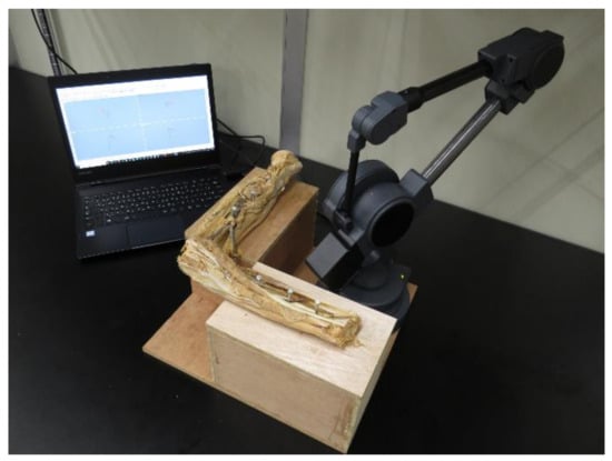 The MicroScribe system is an instrument with high precision (measurement precision of 0.23 mm according to the manufacturer’s specifications). However, measurements must be performed manually. In addition, although the study cadavers were thoroughly fixed to the examination table such that they did not move, it was necessary to test whether they had moved, since the measurements entailed dissection of the ligament and tendon tissue. A previous study found the intraclass correlation coefficient (1, 1) to be 0.97–0.99 [], which indicates a high level of reliability and reproducibility.