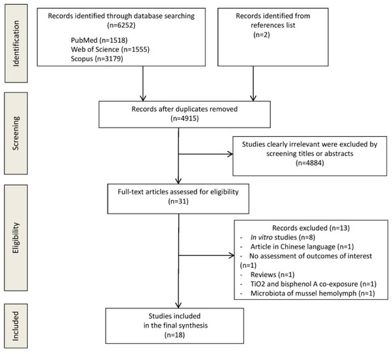 APA StyleRinninella, E., Cintoni, M., Raoul, P., Mora, V., Gasbarrini, A., & Mele, M. C. (2021). Impact of Food Additive Titanium Dioxide on Gut Microbiota Composition, Microbiota-Associated Functions, and Gut Barrier: A Systematic Review of In Vivo Animal Studies. International Journal of Environmental Research and Public Health, 18(4), 2008. https://doi.org/10.3390/ijerph18042008