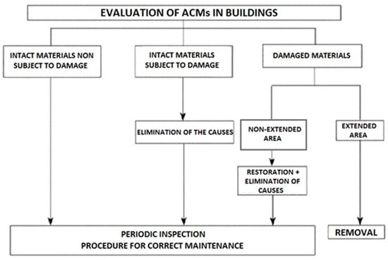 Figure 2 describes the different situations that can occur during the evaluation of ACMs in buildings and the related recommendations in these different cases required by M.D. 6/9/94 [4].