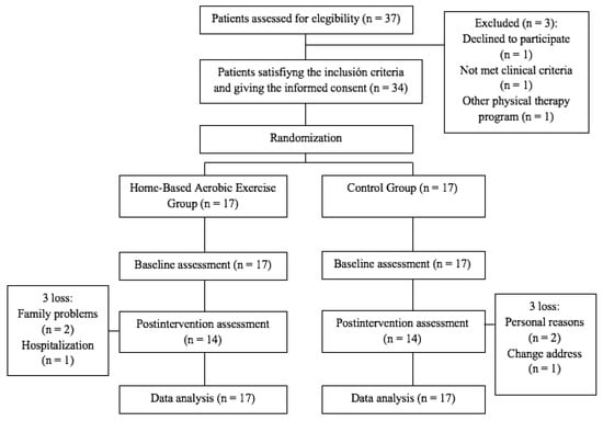 The TP group received 15 weeks of a telerehabilitation aerobic exercise program. The Control group received no additional interventions. Both the TP group and the Control group were asked to maintain the same medical prescription during the study.