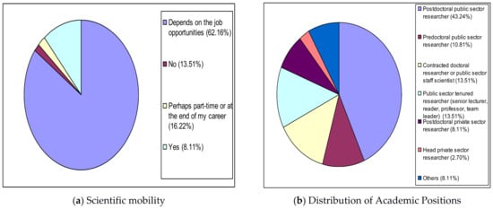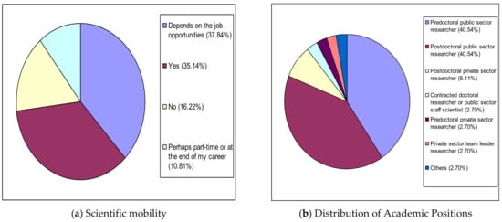 Profile of health sciences young researchers in Spain. (a) Scientific mobility. (b) Distribution of Academic Positions.
