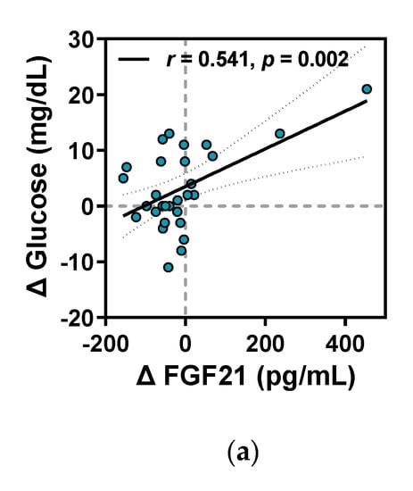 - Lin, Z.; Gong, Q.; Wu, C.; Yu, J.; Lu, T.; Pan, X.; Lin, S.; Li, X. Dynamic change of serum FGF21 levels in response to glucose challenge in human. J. Clin. Endocrinol. Metab. 2012, 97, E1224–E1228. [Google Scholar] [CrossRef] [PubMed]