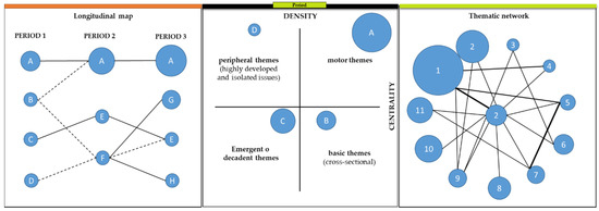 Example of a longitudinal map, strategic map and thematic network. Source: Prepared by the authors of Reference [66].