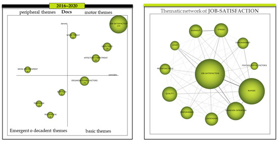 Evolution of the themes period 2016–2020 and thematic network of JOB-SATISFACTION. Source: Prepared by the authors on the basis of SciMAT data.