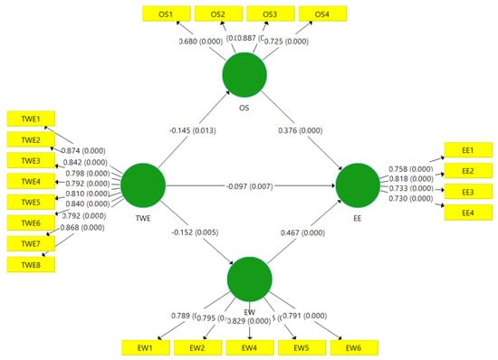 | TWE → EE | −0.097 | −0.098 | 0.037 | 2.590 | 0.010 | Significant |
