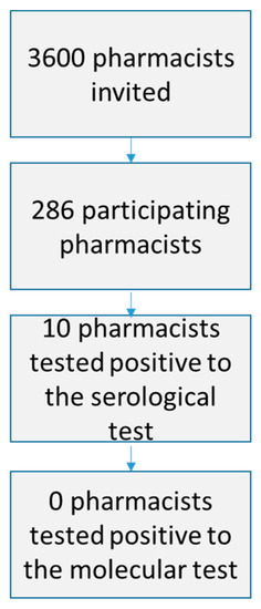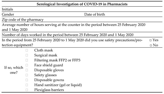 Considering the legislation in force in Italy, approval by an ethics committee was not required because the pharmacists participated in the study on a voluntary basis and they were informed of the characteristics and the purpose of the study. The questionnaire was anonymous, personal data were not collected, and there is no way to trace back the answers to a specific responder. Furthermore, even if the serological test could have been carried out directly by each involved pharmacist, to minimize a possible bias in the method of execution and to use the same model test (one of the most sensitive capillary blood tests at that time) for all involved pharmacists, it was decided to have tests performed at the same moment by the same professional worker.