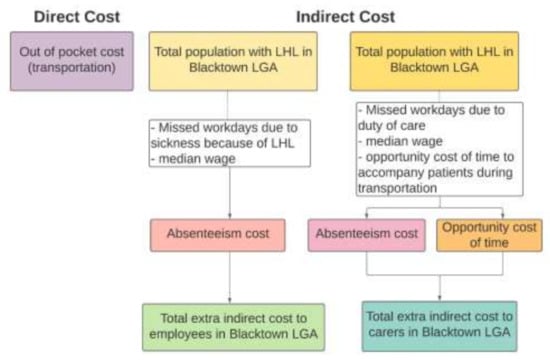 The opportunity cost of carers’ time is also calculated as adding to the overall financial burden of LHL (Figure 2). The opportunity cost for carers is the value of their time that is lost as the result of having to take care of someone with an LHL-related health condition. If the carer was not engaged in looking after the individual with LHL, they could have participated in paid work. The relevant wage rate and number of missed days/time spent performing a carer’s role were multiplied to find the LHL burden for carers.