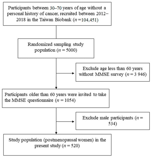 - Heys, M.; Jiang, C.; Cheng, K.K.; Zhang, W.; Yeung, S.L.A.; Lam, T.H.; Leung, G.M.; Schooling, C.M. Life long endogenous estrogen exposure and later adulthood cognitive function in a population of naturally postmenopausal women from Southern China: The Guangzhou Biobank Cohort Study. Psychoneuroendocrinology 2011, 36, 864–873. [Google Scholar] [CrossRef]