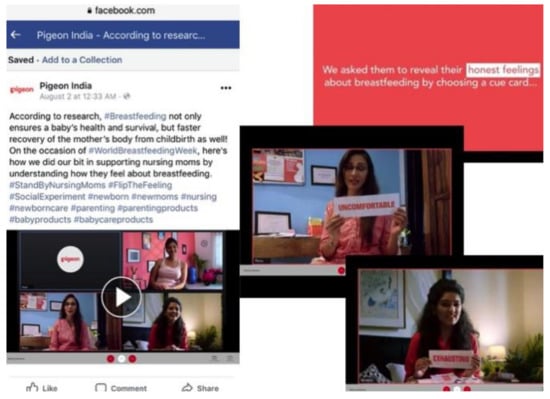 - Pigeon India [@pigeoncare]. According to Research, #Breastfeeding Not Only Ensures a baby’s Health and Survival, But Faster Recovery of the Mother’s Body from Childbirth as Well! [Video]. Facebook. 2 August 2020. Available online: https://www.facebook.com/pigeoncare/videos/2342999596004835 (accessed on 20 September 2020).
