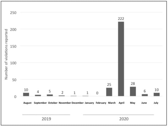 Number of reported violations in the Philippines (January 2019 to July 2020).