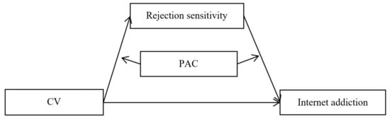 Rejection sensitivity is defined as the cognitive and emotional tendency to anticipate, perceive, and overreact defensively to the signs of rejection by others []. According to the rejection sensitivity model [], adolescents who suffer from interpersonal rejection tend to experience higher rejection sensitivity and then lead to maladaptive behavioral responses [,]. That is to say, rejection sensitivity might mediate the relationship between cybervictimization and Internet addiction.