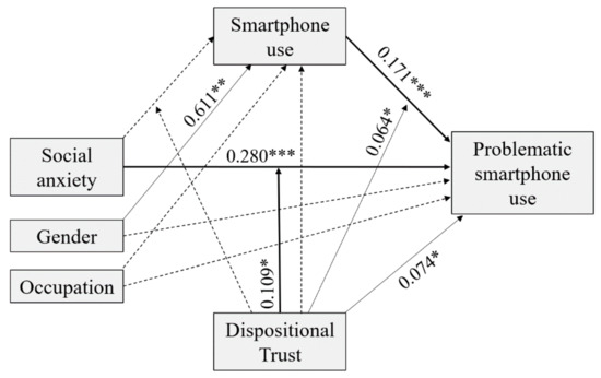 Dispositional trust moderates the relationship between social anxiety, smartphone use, and PSU inasmuch as it strengthens the relationship among these concepts.