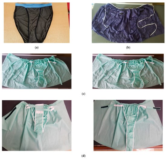 Developed Perineal Underwear. (a) First Version of the Perineal Underwear; (b) Second Version of the Perineal Underwear; (c) Third Version of the Perineal Underwear; and (d) Final Version of the Perineal Underwear.
