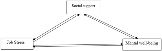 The proposed theoretical framework of the relationship between job stress, social support, and mental well-being is displayed in Figure 1 and Figure 2.