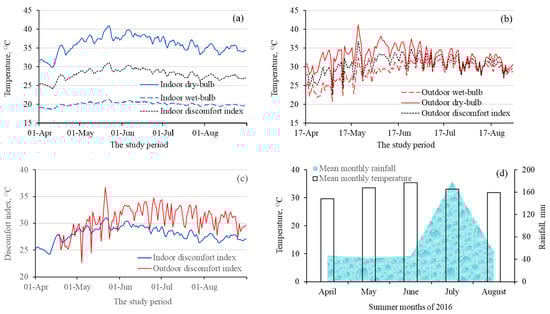 | Date dd/mm | a. Discomfort Index from Measured Td and Tw, °C | b. Discomfort Index from Engineering TooBox Equation [35], °C | c. Discomfort Index from Measured Outdoor Td-Tw Relation, °C |